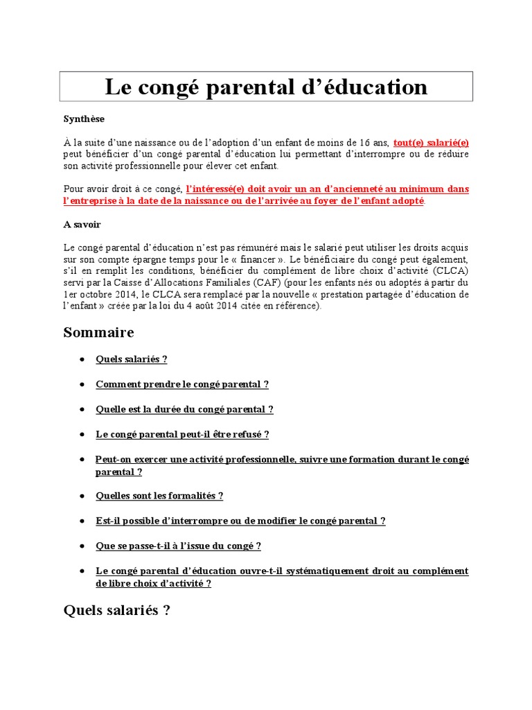 Demande De Cong? Parental D ?Ducation